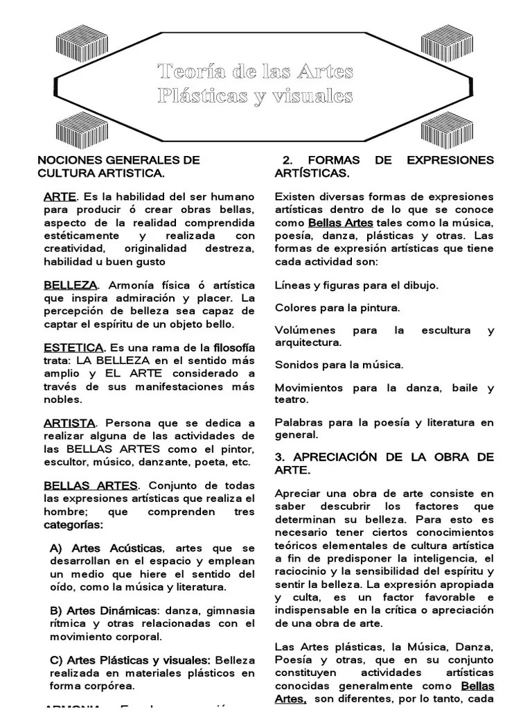 Las artes visuales son una disciplina del arte en la cual podemos observar e introducir varias técnicas del arte plástico tradicional y también se incluyen nuevas formas de representación y expresión... Es el arte de proyectar y construir. Durante la edad media, en occidente, las artes iniciaron su separación de lo que. Loela galaviz garcía • jorge galaviz garcía artes visuales 1 secundaria primer grado dirección editorial imagen agradecimientos doris arroba jácome yina garza ediciones sm agradece a todos y cada uno de los siguientes artistas plásticos, la reproducción de sus obras coordinación editorial digitalización y retoque para integrarlas en el cuaderno de trabajo artes visuales 1 guadalupe. Para muchos autores, el texto explicativo es lo mismo que el texto expositivo porque ambos procuran transmitir un conocimiento sobre un tema informando de manera puntual, coherente y clara... Las artes visuales son una disciplina del arte en la cual podemos observar e introducir varias técnicas del arte plástico tradicional y también se incluyen nuevas formas de representación y expresión.